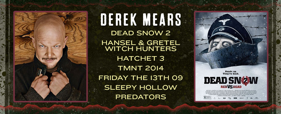 Since breaking out in the horror genre with his portrayal of Jason Voorhees in 2009’s Friday the 13th, Derek Mears’ career has been on fire. From roles in films like Hatchet 3 and Compound Fracture to television spots on shows such as Holliston, Sons of Anarchy, Grimm and most recently Sleepy Hollow, Derek has shown his acting skills as well as being a top notch stunt performer. He even has an improv comedy troupe, The Resistance, that performs every week in Los Angeles. Rock and Shock is beyond thrilled to announce that Derek will be able to join us for this year’s show, and that his appearance is being sponsored by his latest film, Dead Snow 2: Red vs. Dead