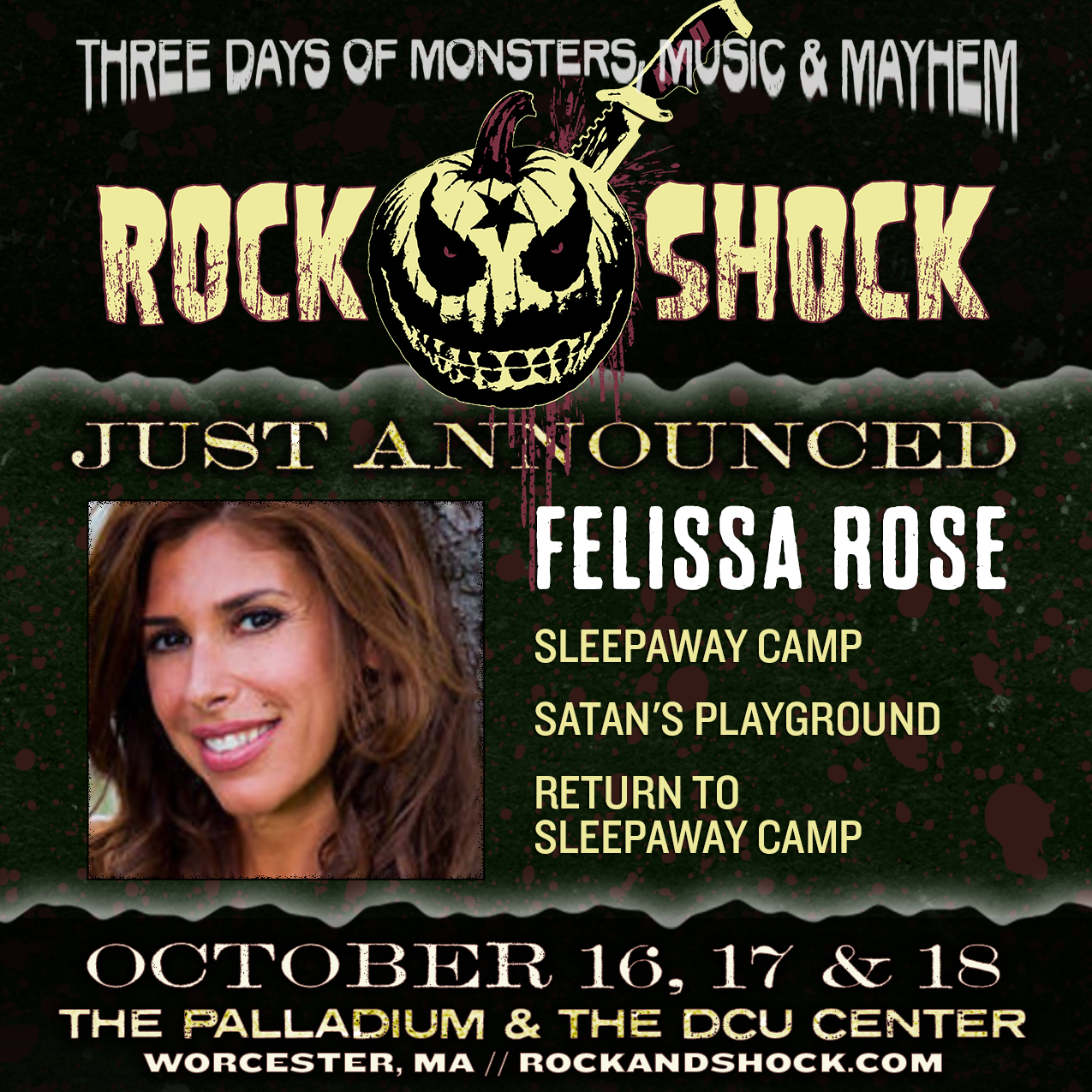 Since we were talking about kind people earlier we just had to mention Felissa Rose, who is one of the nicest guests you could meet at a convention, taking time with her fans and regaling them with stories from her vast horror portfolio which began when she was a mere teenager in the classic film Sleepaway Camp. She returned to the franchise in 2008 for Return to Sleepaway Camp, and has also appeared in films such as Satan’s Playground, Silent Night, Zombie Night and Within These Walls. Felissa has been highly requested by our fans, and we’re very happy to be able to welcome her to Rock and Shock this October!