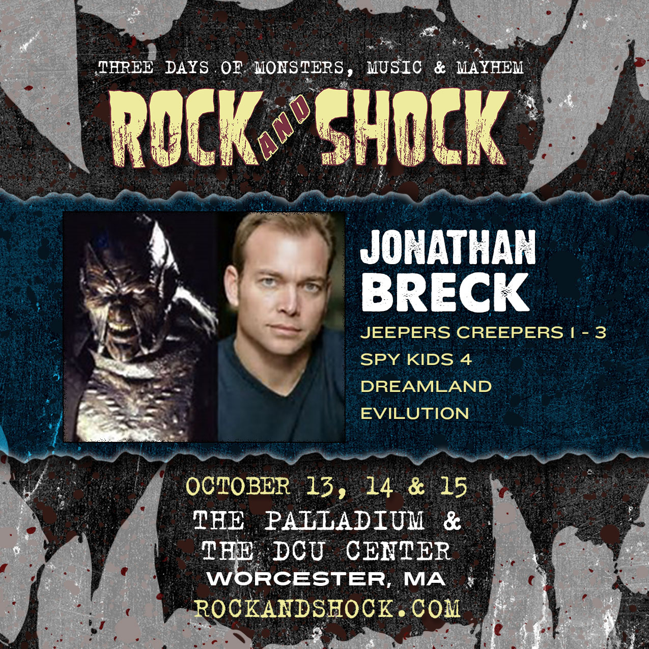 GUEST ANNOUNCEMENT! Jonathan Breck has achieved a very rare feat in the world of horror movie monsters. Having played The Creeper in every Jeepers Creepers film, Jonathan joined a very small club of actors to have been the only person to portray a particular villain through the original film and all its sequels. Fans of the character, of course, wouldn’t have it any other way, as he brought a mesmerizing form of menace that breathed life into the franchise and has kept it popular since the first film debuted in 2001. Mr. Breck hasn’t been to our show since 2005, and as he doesn’t do very many conventions we are excited that he is spending his October 13-15 with you all.